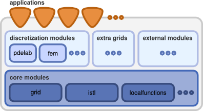 • An interface for [finite element bases](/modules/dune-functions/, together with a generic mechanism to construct complicated bases from simpler ones